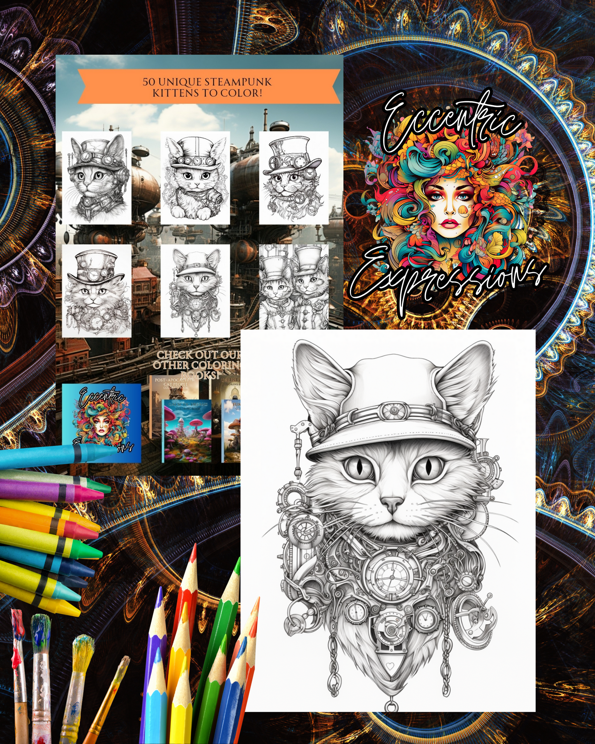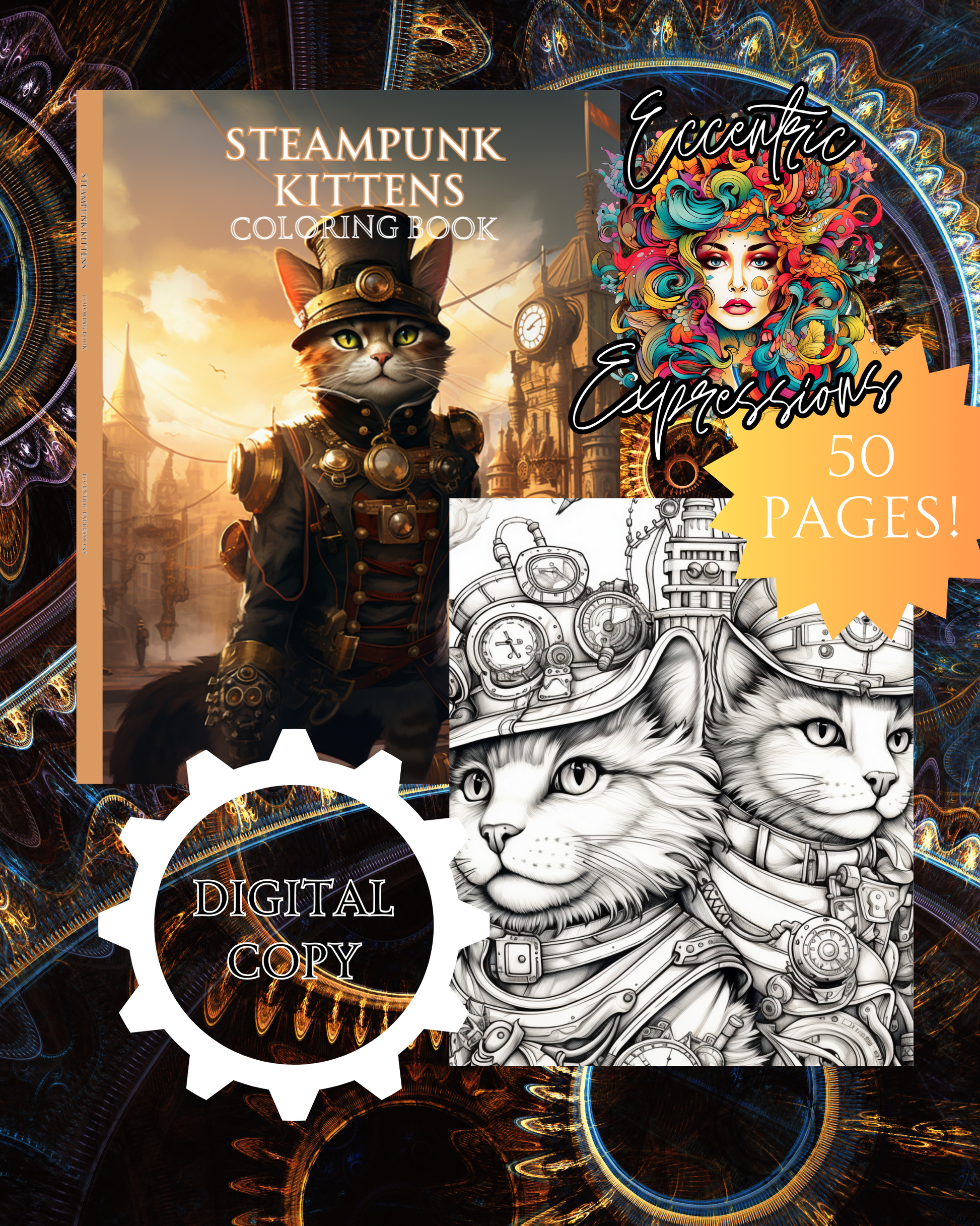 Explore a unique fusion of Victorian whimsy with delightful Steampunk Kittens. This captivating adult coloring book offers 50 intricate illustrations filled with top hats, goggles, and mechanized contraptions that you can bring to life with your color palette and artistic flair. Perfect for beginners and experienced colorists, each stroke is an imaginative escape that promises calming relaxation and hours of artistic expression. Discover a world of purrs and gears and let your creativity take flight.