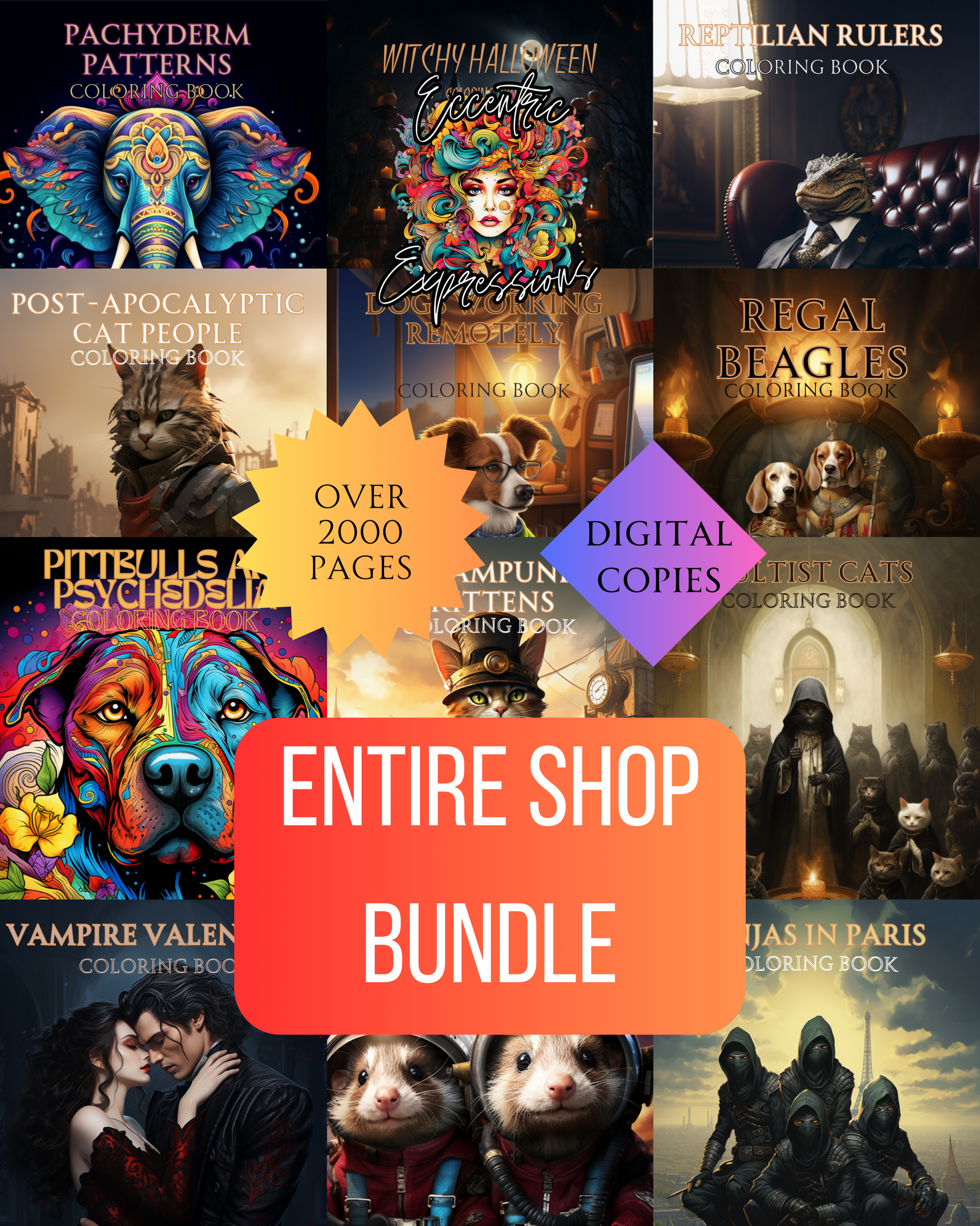 Dive into a world of artistic eccentricities with the ultimate coloring collection from Eccentric Expressions! This exclusive bundle includes every coloring book currently listed in our shop, as well as all future releases, guaranteeing you hours upon hours of creative exploration. With over 2000 pages of delightful illustrations and 40 unique coloring books, this bundle offers a diverse range of themes to satisfy your coloring cravings.
