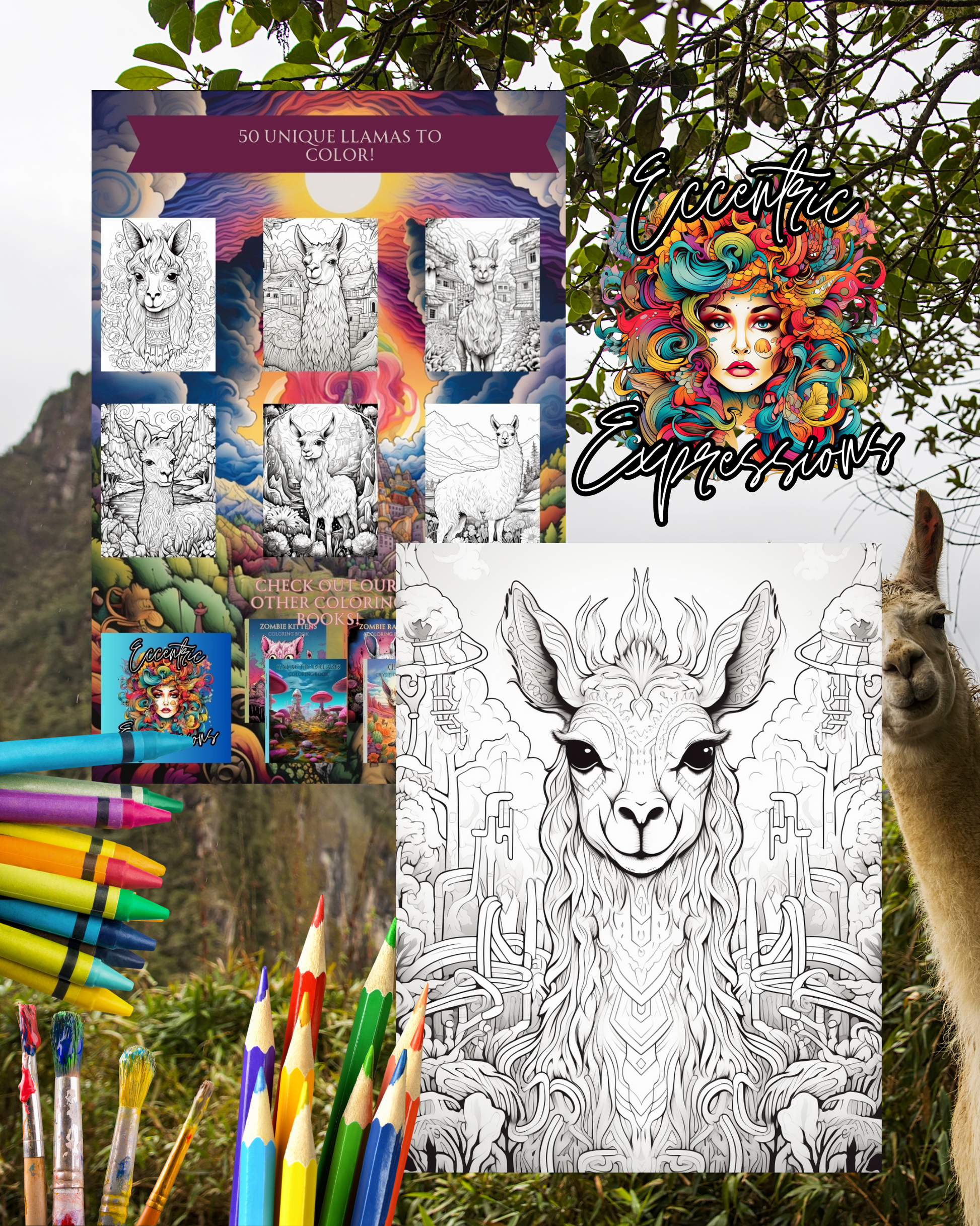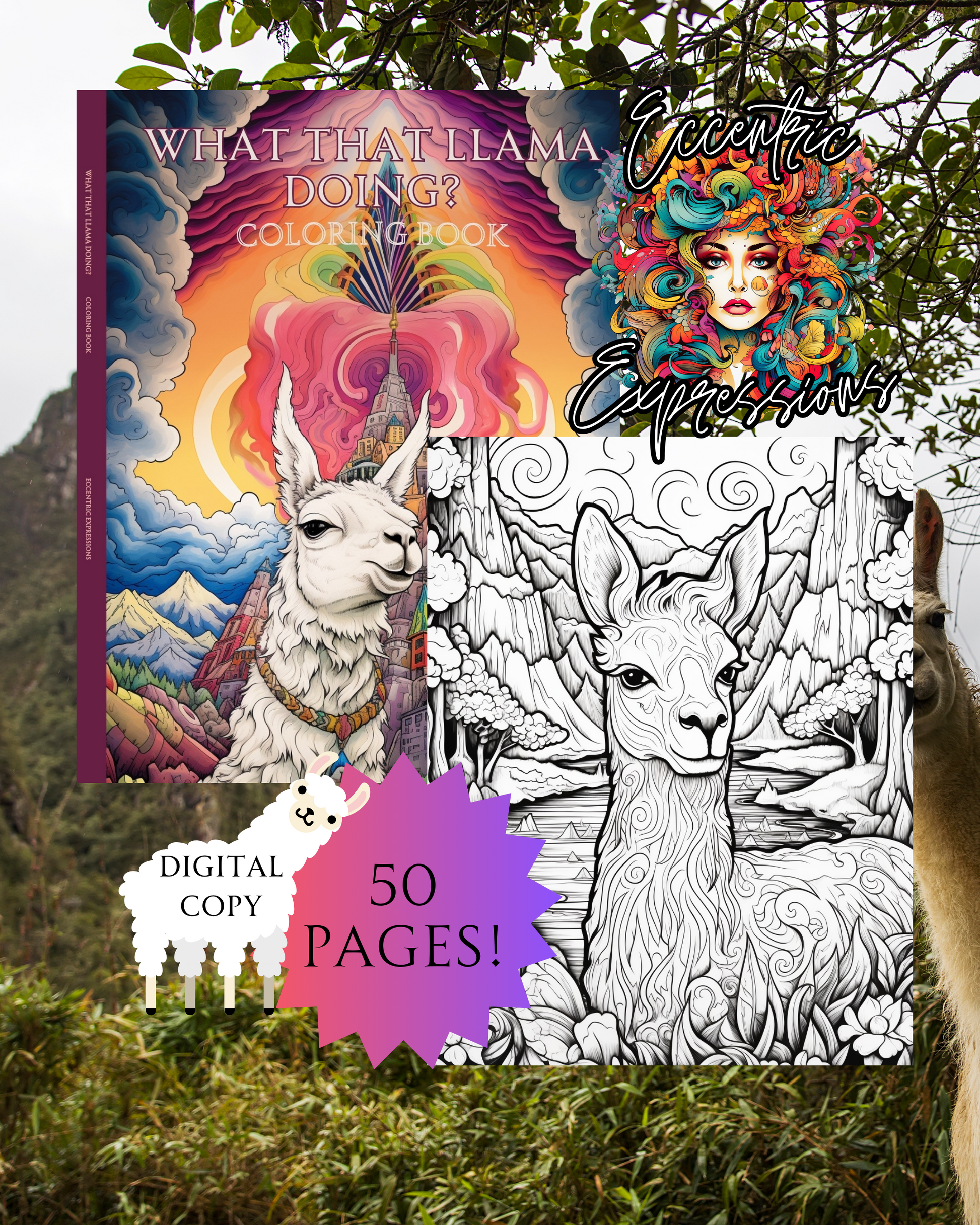 Explore 50 unique llama illustrations with What That Llama Doing???, an adult coloring book. Each page is crafted to provide hours of stress relief and artistic expression. Get ready to embark on a joyful exploration with these lovable llamas while using your favorite coloring mediums. Enjoy a peaceful escape and let your creativity soar!